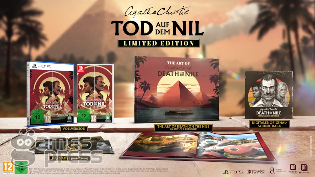 Microids und das französische Studio Microids Studio Lyon haben die Veröffentlichung von Agatha Christie – Tod auf dem Nil für den 25. September 2025 angekündigt. Das klassische Detektivabenteuer erscheint für PlayStation 5, Xbox Series, Nintendo Switch und PC.